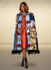 Fabric & Description: Virtual Silk Print Fabric Trimmed With Black Feathers & Rhinestone Buckle. Dress in Virtual Silk Fabric.