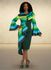 Fabric & Description: Poly/Spandex Fabric in Print & Solid With Gold Buttons.