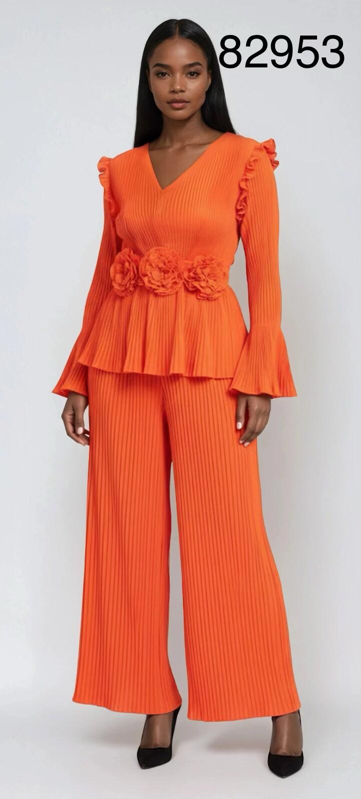 Description: Pleated Peplum Pant Set with Floral Waist Detail