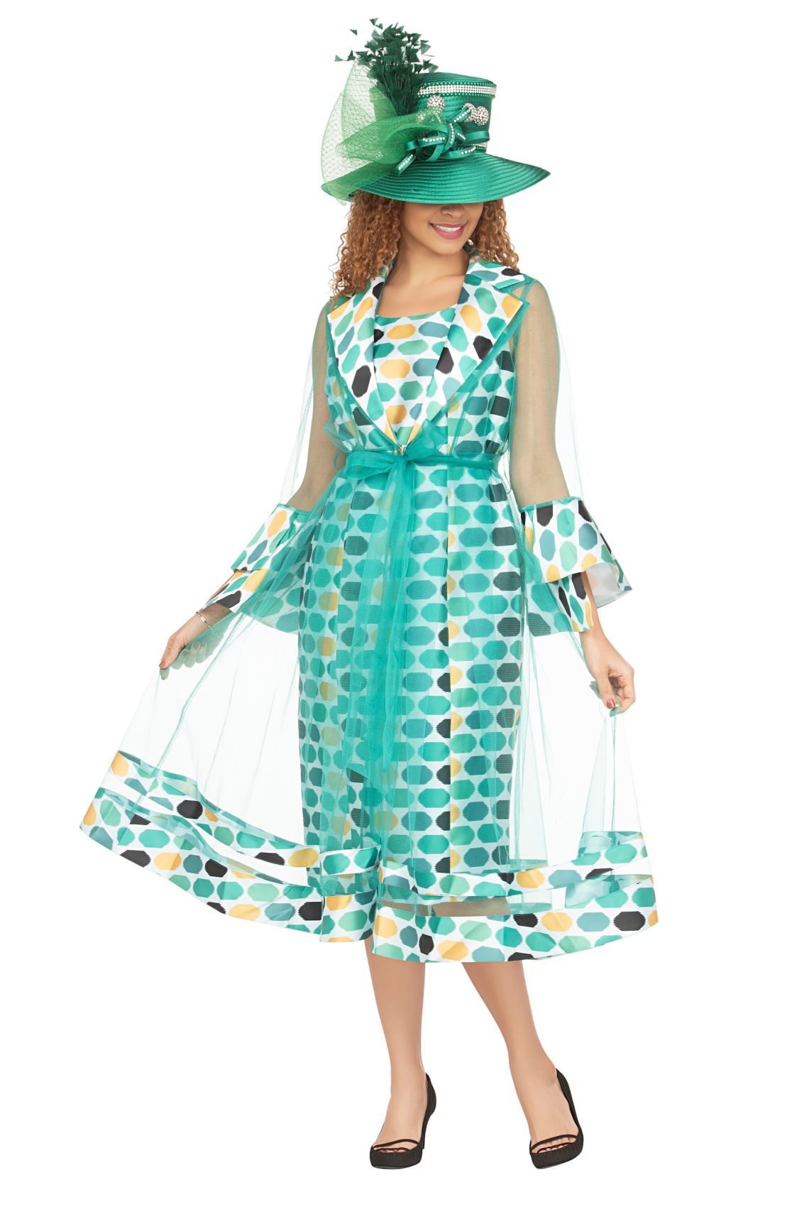 Description: Dot Print 2pc Bell Sleeve Sheer Jacket Dress Set