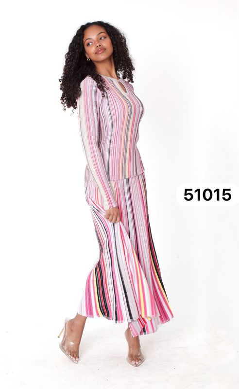 Description: Multicolor Stripe Fitted Lonf Sleeve Knit Top & Flowing Skirt Set