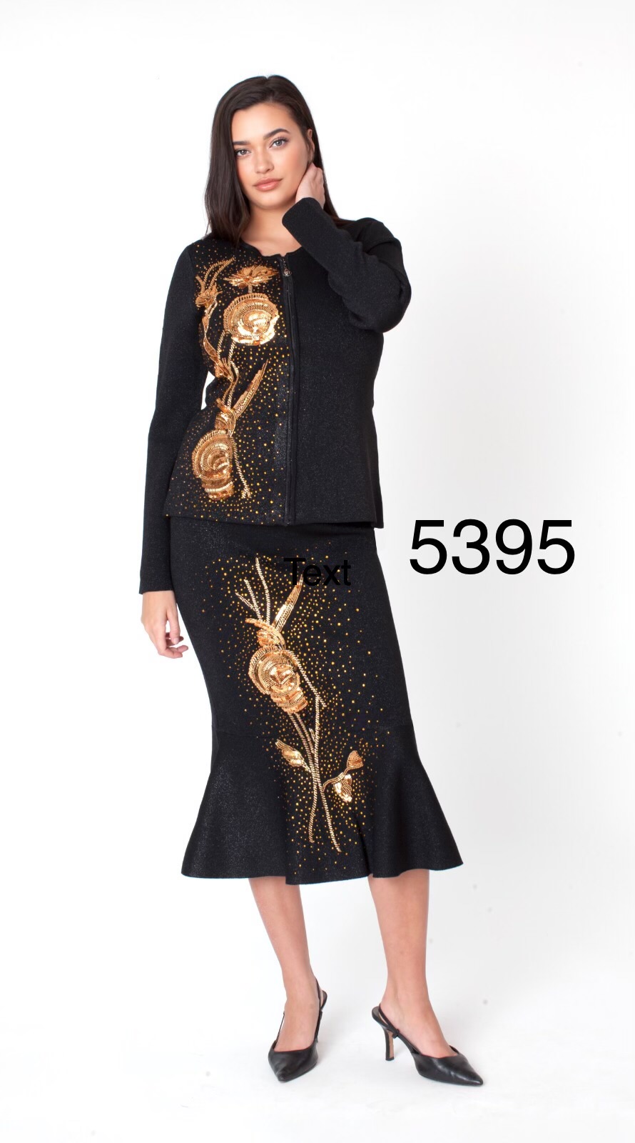 Description: Embellished Knit Skirt Suit Set