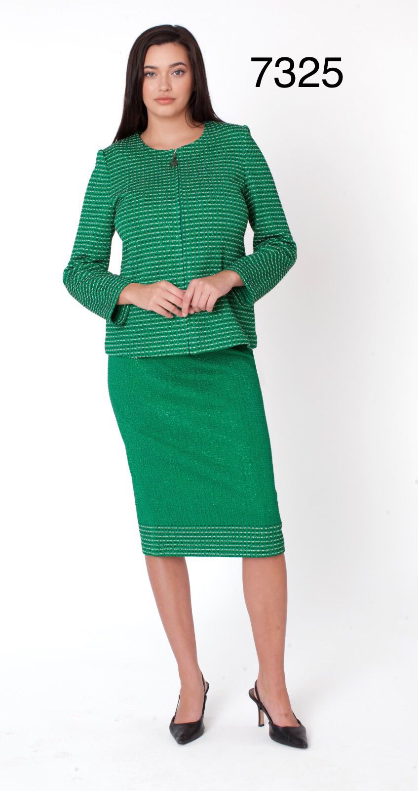 Description: Textured Knit Skirt Suit w/Tailored Jacket & Sleek Pencil Skirt