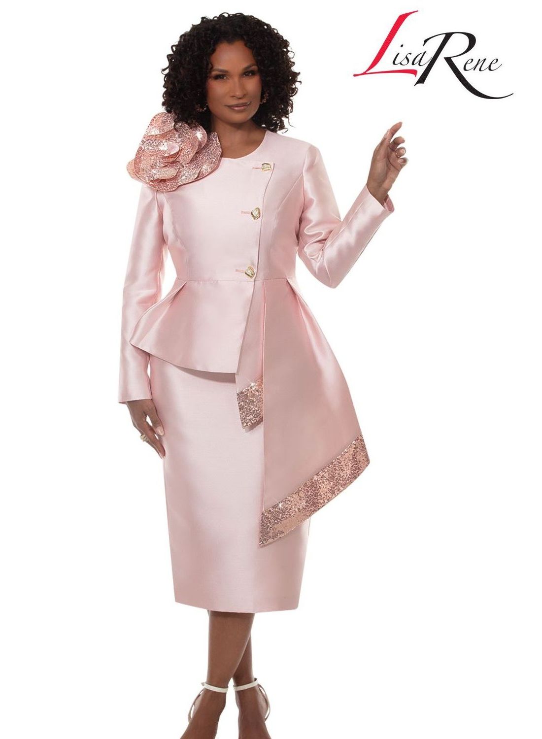 Fabric & Description: Virtual Silk Fabric Trimmed With Novelty Sequins With A Beautiful Corsage And Metallic Gold Buttons With Rhinestones