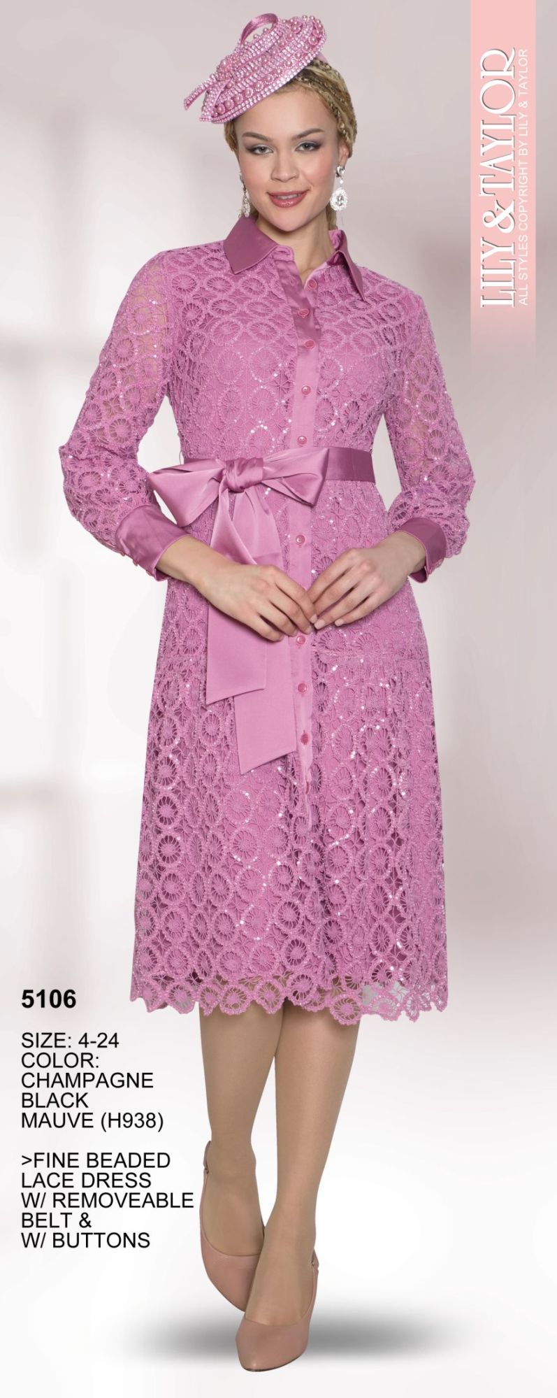 Description: Fine Beaded Lace Dress w/ Removable Belt & Buttons