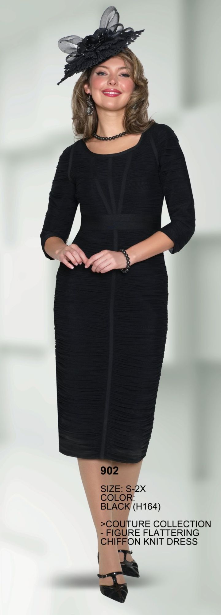 Description: Couture Collection – Figure Flattering Chiffon Knit Dress