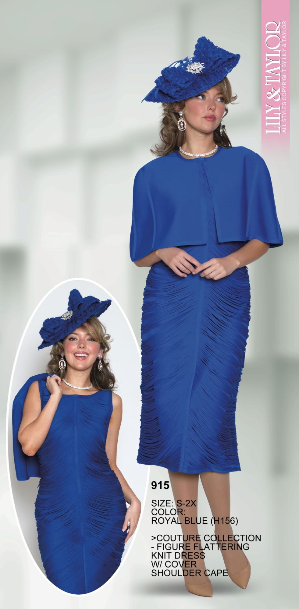 Description: Couture Collection – Figure Flattering Knit Dress w/ Cover Shoulder Cape