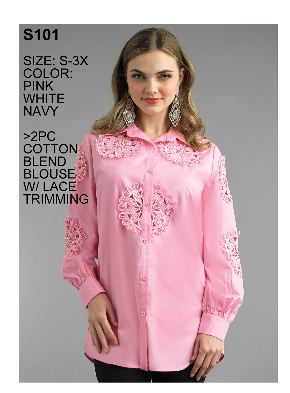 Description: 2 Pc. Cotton Blend Blouse w/Lace Trimming