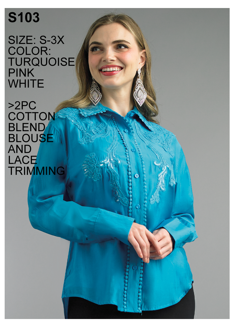 Description: 2 Pc. Cotton Blend Blouse w/Lace Trimming
