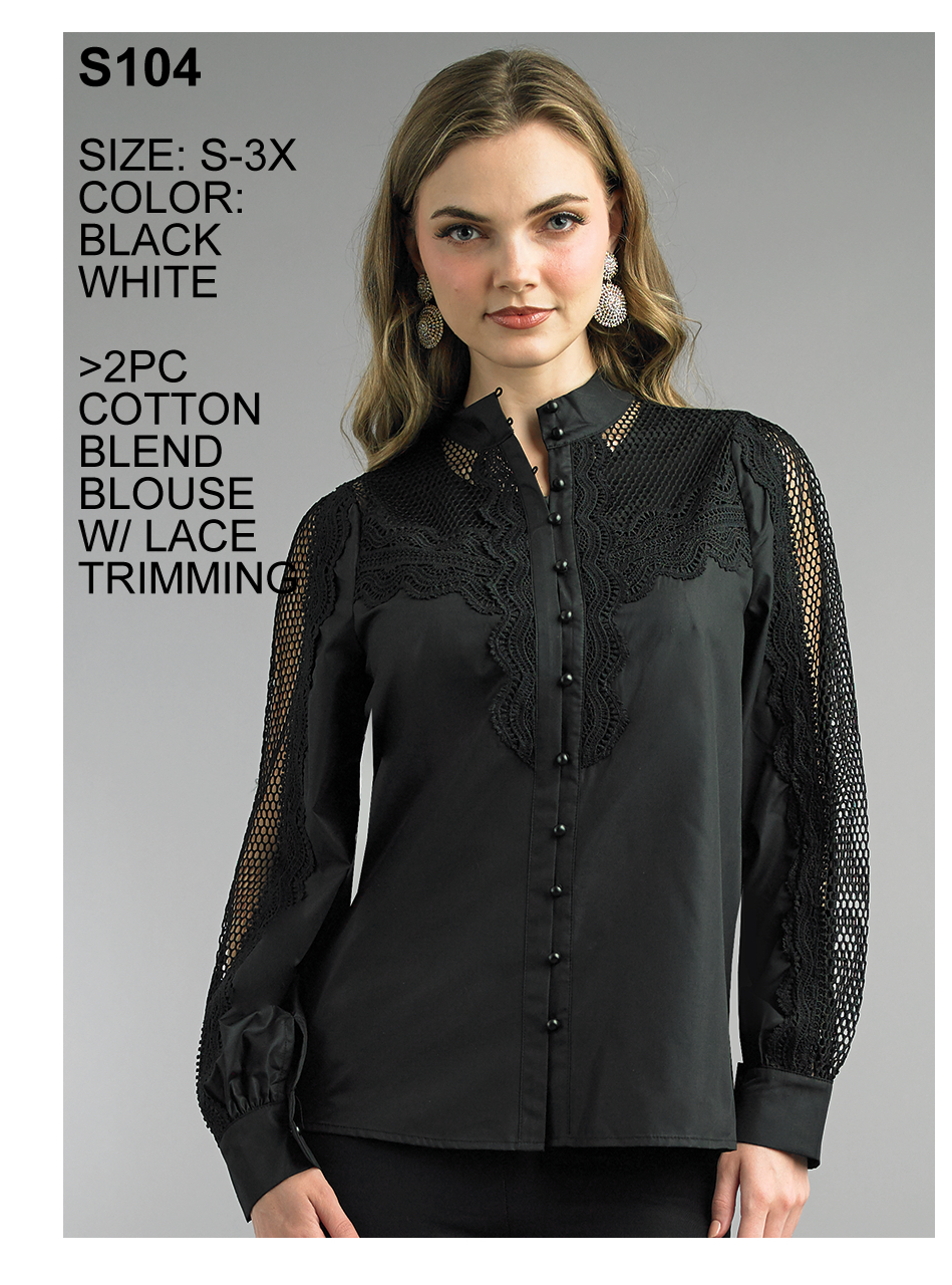 Description: 2 Pc. Cotton Blend Blouse w/Lace Trimming