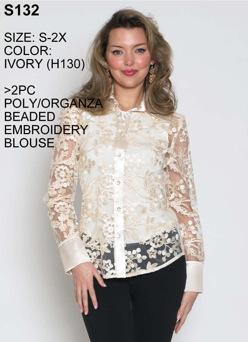 Description: 2PC Poly/Organza Beaded Embroidery Blouse