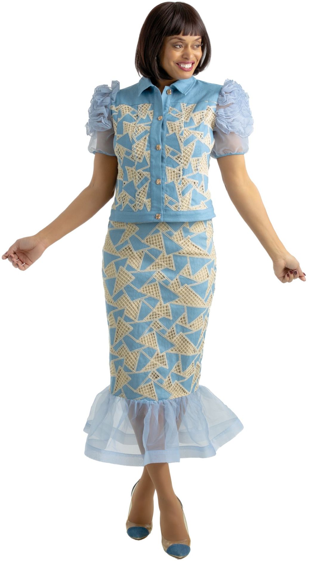 Embroidery pattern skirt set with organza ruffle hem and sleeves