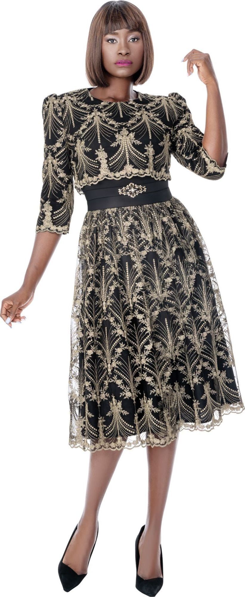 1 Piece Dress Lace overlay Dress with belt look