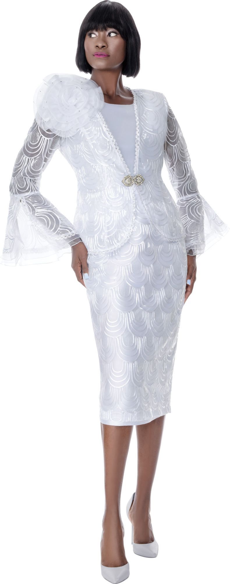Description: 3 Piece Skirt Suit 3D Shoulder Adornment With Flare Cuffs