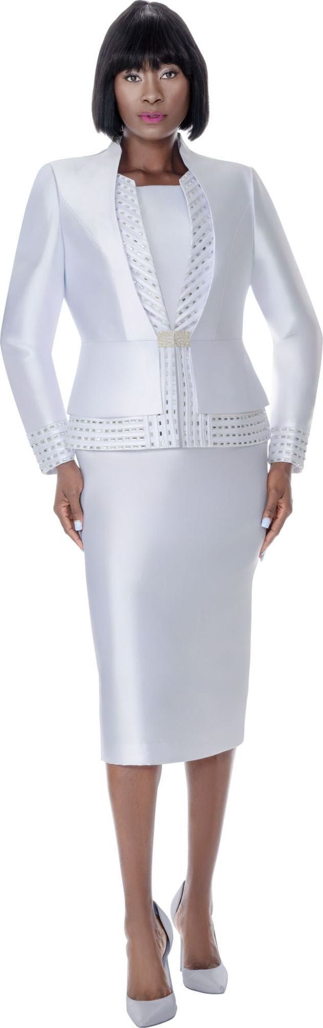 Description: 3 Piece Skirt Suit silky twill with stone trim