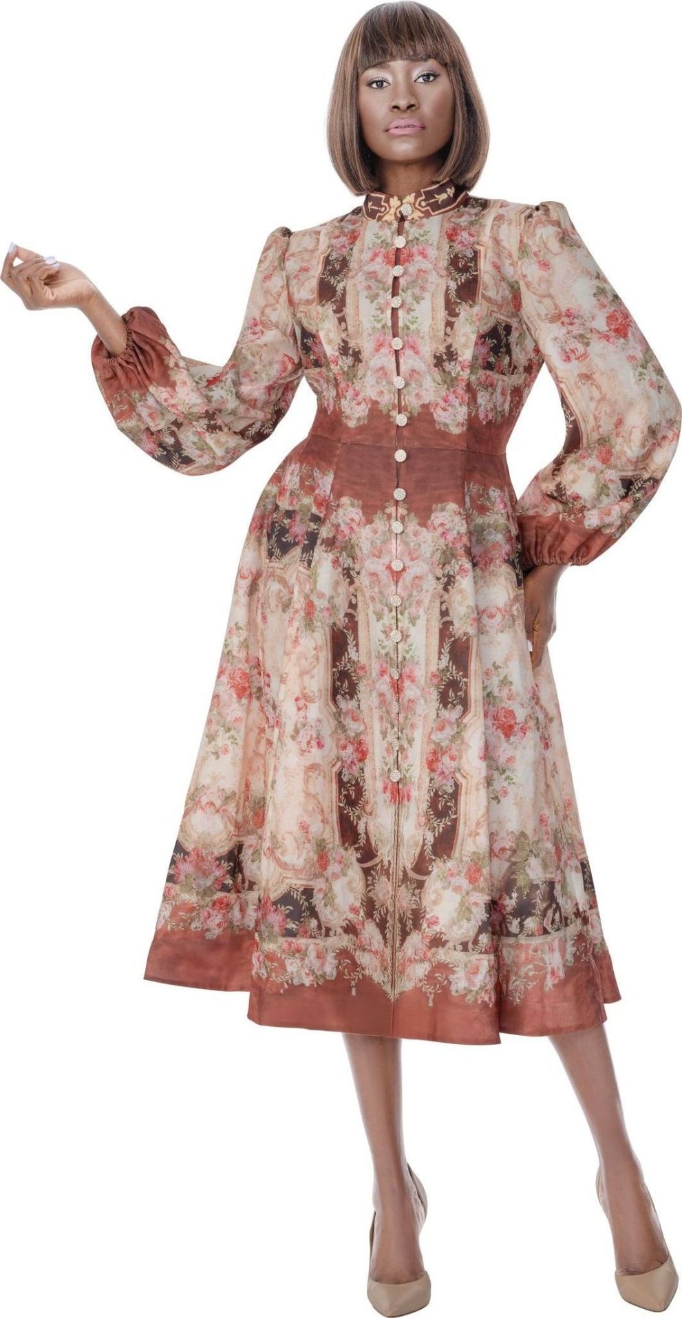 Description: 1 Piece Dress Bishop Sleeves & Collar with rhinestone buttons trim