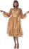 Description: 1 Piece Dress collared novelty lace dress with satin belt & button front with sheer shoulder & bishop sleeves & layered hem