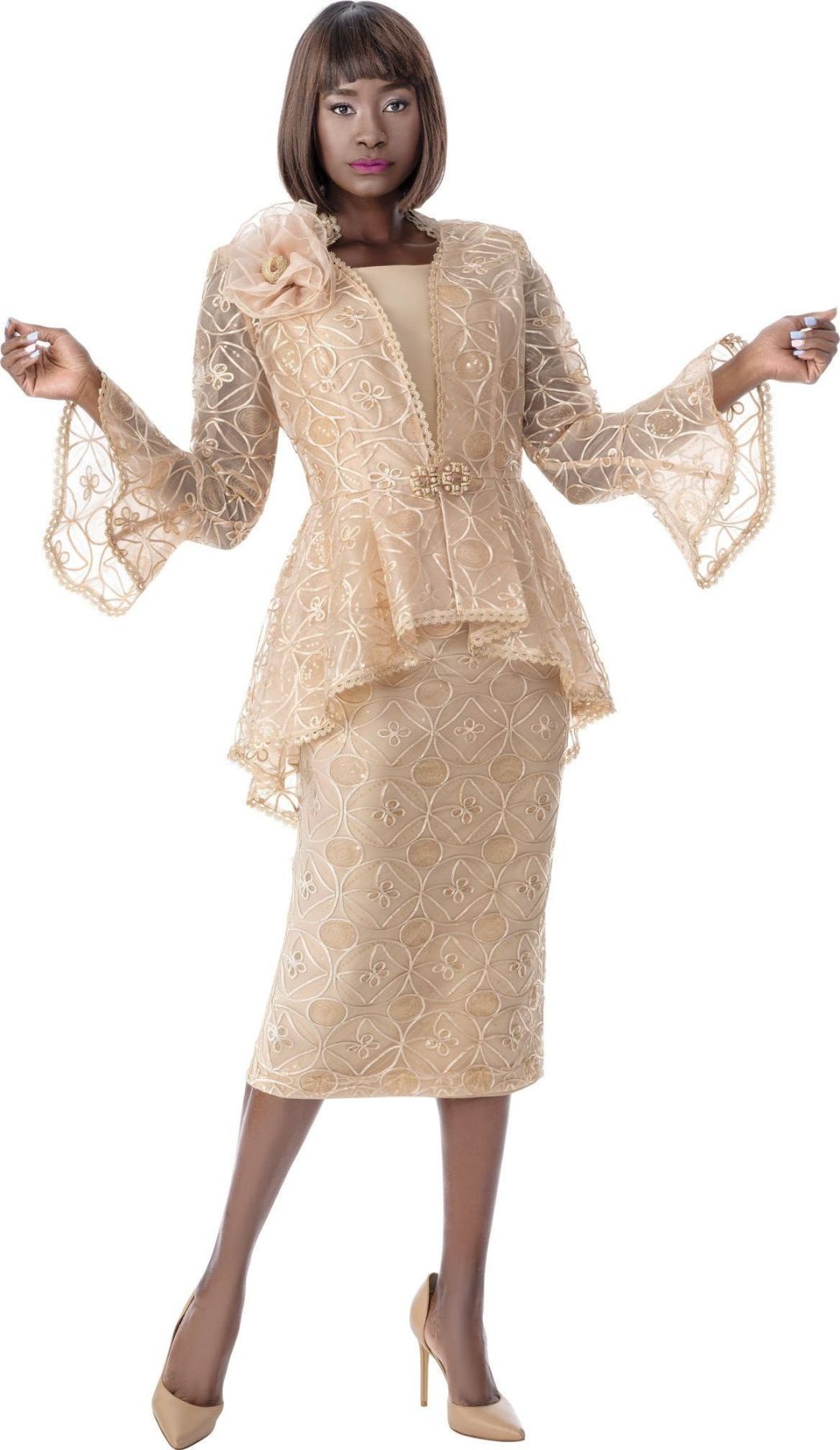 Description: 3 Piece Skirt Suit Lace with 3D Brooch & Rhinestone Clasp