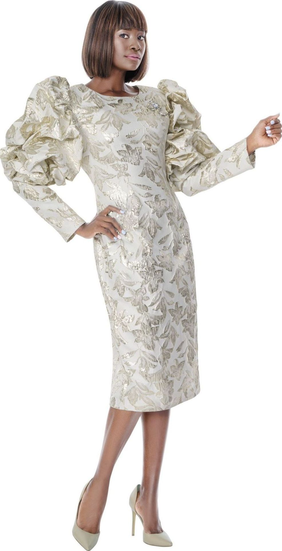 1 Piece Dress in Jacquard with balloon Puff Sleeves