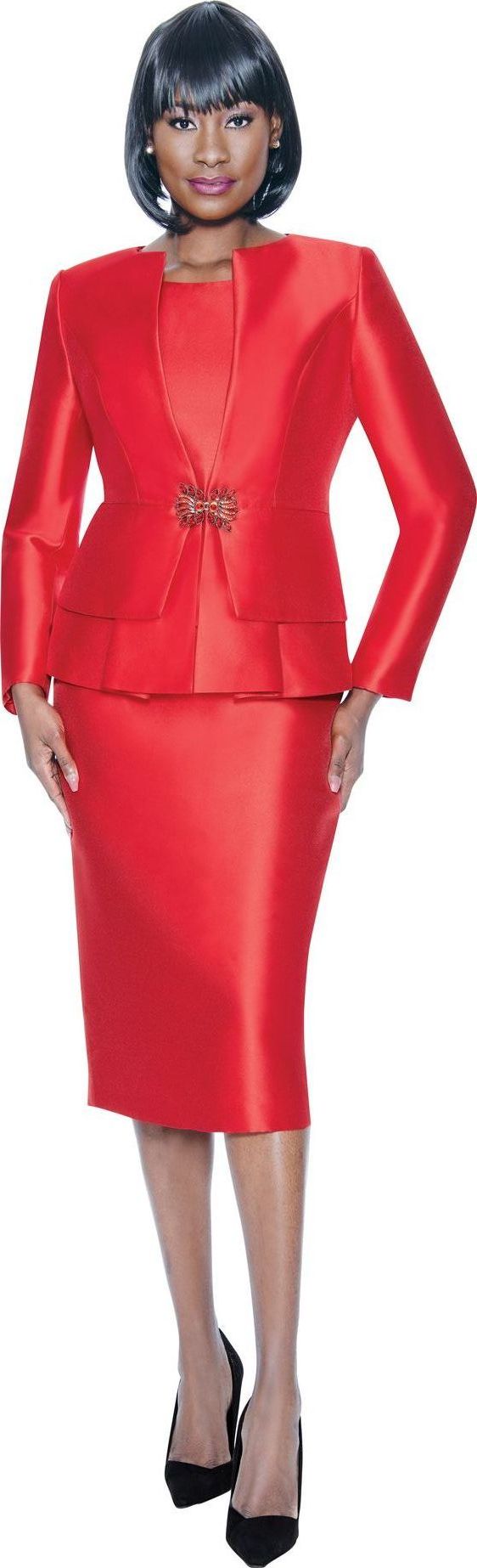 Description: 3 Piece Skirt Suit in Light Silk Look with Peplum Jacket & Rhinestone Clasp Closure