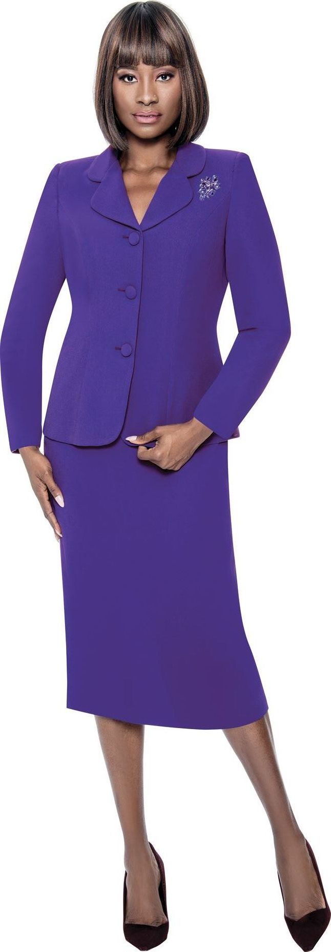 2 Piece Skirt Suit with Button Down Jacket Closure & Brooch in Peach Skin Fabric