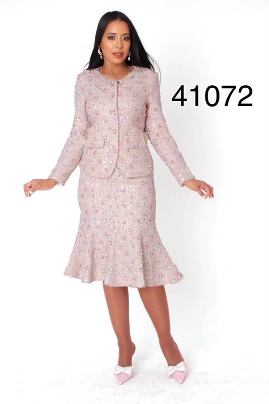 Description: Embroidered Sequin Tweed Jacket & Skirt Set